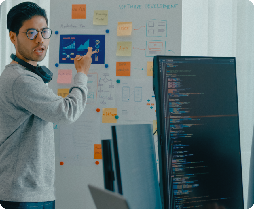 Impulsionamos a produtividade ao integrar IA e automação à rotina dos times de tecnologia. Aplicamos esses recursos em geração assistida de código, documentação, testes, revisão de pull requests e automação de fluxos recorrentes. Com isso, os desenvolvedores reduzem esforço operacional, ganham velocidade nas tarefas repetitivas e mantêm foco nas decisões técnicas que mais impactam a entrega.